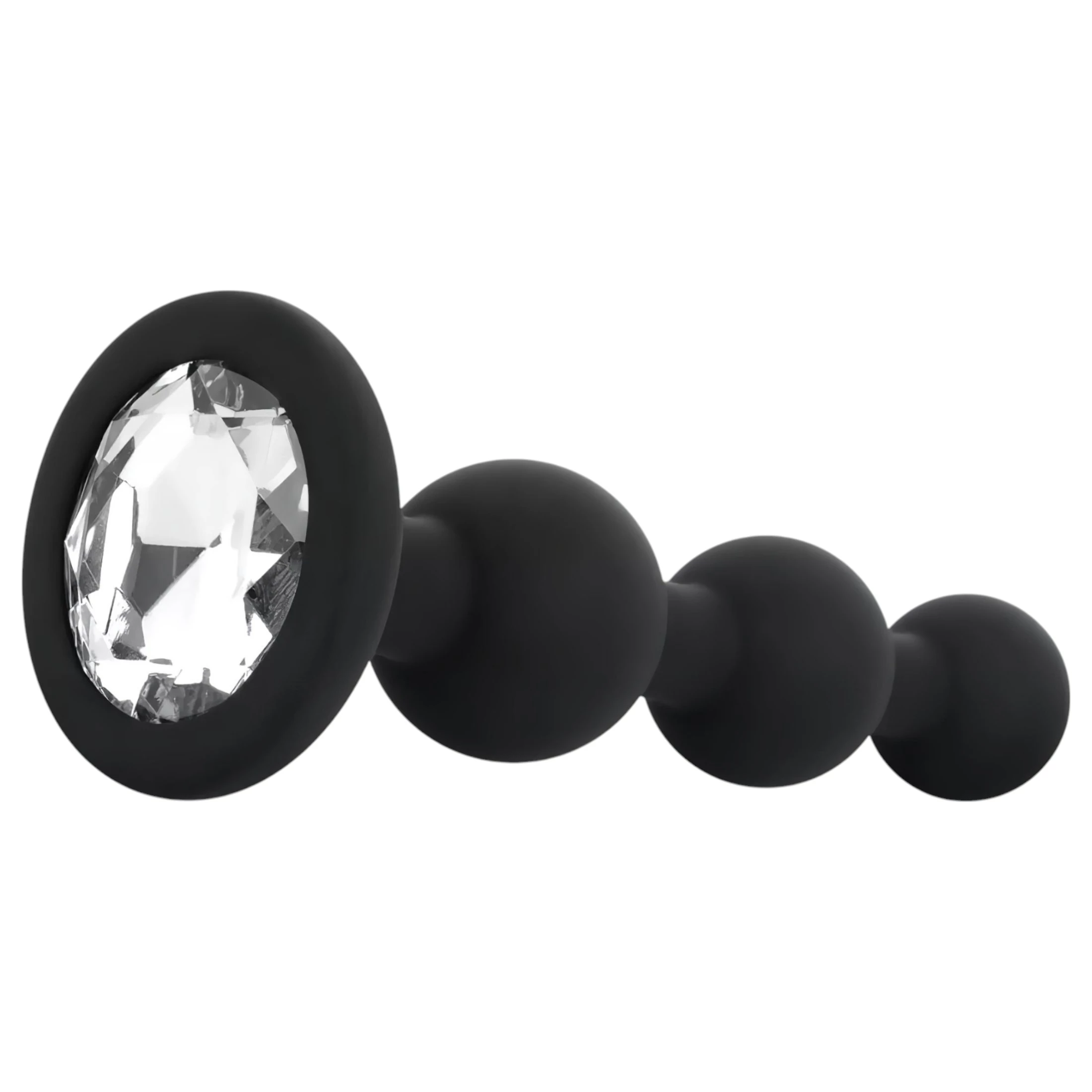 Elegáns, háromgyöngyös szilikon anál plug csillogó ezüst ékkővel – stílusos kényeztetés kezdőknek és haladóknak egyaránt!